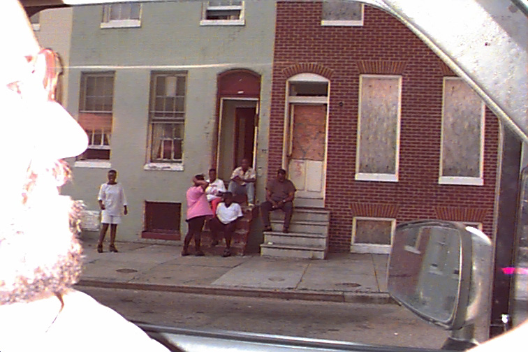 drivin' around baltimore with peter, we cruise into some downpressed neighborhoodslingering in the heat, sweaty, concretesandtown-winchester places where people weren't doin' much I guess,