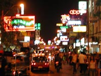 travelling throws an immediate light on your previous surroundings. I arrived in Thailand at night. From a bus overlooking the city the sidestreets lit up with small lamps on foodcarts people sitting around in the february heat chatting. people sleeping on cardboard. dogs. stray dogs. i had forgotten that about honduras, puerto lempira at night had no lights, at least here we dogs can scope each other out. when i'm low, hungry, overdressed in thick pants and tired from travel, i can come to feel as prey. a man with a open air taxi powered by what sounds like a lawnmotor motor shows me a brochure, a vision of thai ladies and baths or something. it was quite worn from being shown. i declined his offer to drive me there. he followed me in his little cab down the street talking quietly amidst the put-put sounds as I contemplated piles of trash. i'm waiting for day when the brilliant colors come visible besides out from under harsh lights. i was recommended to come to this part of town banglampu where foreigners stay so the faces i see either cater to tourists or have dreadlocks and personalized facial hair patterns. there's a message board with postings from friends of foriengers who have ended up in jail - please visit this kind scotsman, he's lonely in a thai prison. Here the english in advertisements and signs is more thorough and natural. it seems that people speak some english as a matter of course, not as a matter of struggle. Japan uses english in advertisements and signs more sparingly, and to reflect a Japanese rewriting. So this country is immediately more welcoming in that way. Japan is expensive. Part of what you're paying for is the general cleanliness, security and level of service. My room at this foreigners hostel is dirty and cheap, cheap like La Mosquitia cheap. there are hotels on par with Tokyo lodging here; I'm not sure that you could find an equivalent place to where I'm staying in Japan. It's too dirty. I forgot that about the tropics, the decay is evident. In the north continuous valiant efforts keep most buildings ready to retain heat for chilled bodies. Here, a rained out husk of an old wooden building might be prefereable to sleep in because it gets good ventilation. To come here is to wonder. Have I become so professional, travelling with the tools of a digital media composer, that I can't feel comfortable where I should feel free? That is to say, I could have made this trip with a book only, and a pen, and been happy with the contents of my pockets. But I need to go with computers and the capacity to check email and cameras and batteries and all the wires sprouted out from beneath my fingernails. I don't wander like these tanned bare shouldered foreigners wandering between guest houses in Bangkok; they have traded their nationality in favour of one tribe that I visit at trance parties and sometimes in San Francisco. I have been in this tribe, and increasingly the tribe of frequent flying laptop toting two mobile phone carrying pale people who have traded their nationality for globalizing. It's quite fun except when you realize that some great beauty might lie off of the grid but you can't see past the glowing lines.