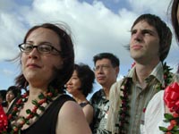 A Hawaiian chanter - something appropriately local and vowel-laden, filling the ceremony with sweeping deep pagan tones just before the Episcipalian priest stepped in to speak of their union reflecting the spirit of the devine.
