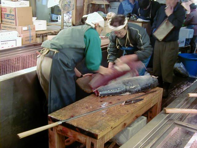 That's a very very long blade! I thought it was similar perhaps to a Katana, samurai sword, until I realized that it was probably far too long and heavy. Rather it's a very sharp instrument for a very specific type of cutting.