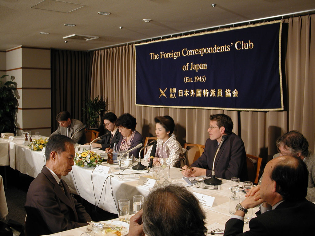 Ending an unfortunately long dry spell, the FCCJ recently played host to a discussion of Japan's mizu shobai, or "water trade" with a pair of speakers: Economist Takashi Kadokura, author of the highly recommended "White Paper on Japan's Underground Economy" and Rie Hara, an actual Mama from one of the Ginza's most exclusive hostess clubs. The media room was full to overflowing; waiting in line for the pasta with seaweed to be replenished, mizu shobai veteran Mark Schrieber remarked, "So many people must be here because it's cheaper than meeting the mama at her bar."