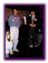 A corporate suit interupted the reverie to deliver a corporate victory speech unremarkable. He didn't demand the rapt attention of the audience, and neither seemed to care. "Who's that?" I ask the guy next to me - it's Bill Machrone, editor in chief of PC Magazine for ten years, now Editor in Chief of "Yahoo! Internet Life."A cooperative venture between these two edge cutters of content, offering each a respected foray into a world in which they have little clout, and much to gain.Following his brief crowing, he announced that the Yahoo guys weren't actually there, but if we turned to the two seven foot video screens on either side of the dance floor, we would recieve a message from Jerry Yang, co-Chief Yahoo.Ziff-Davis gets web street cred for being associated with one of the top five brand names on the net.